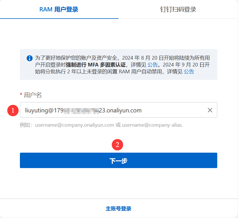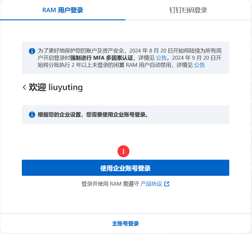 图3:点击 使用企业账号登录,在IDaaS中完成用户认证后即可登录阿里云。
