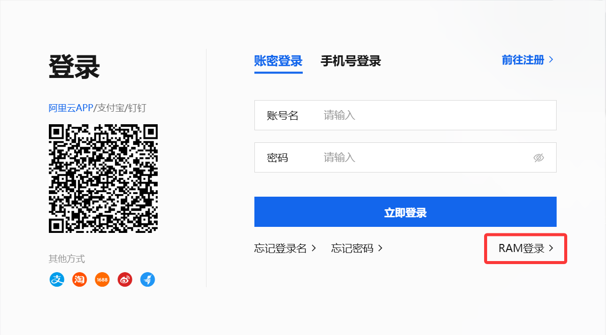 点击 阿里云-用户SSO 图标,即可快速登录阿里云。