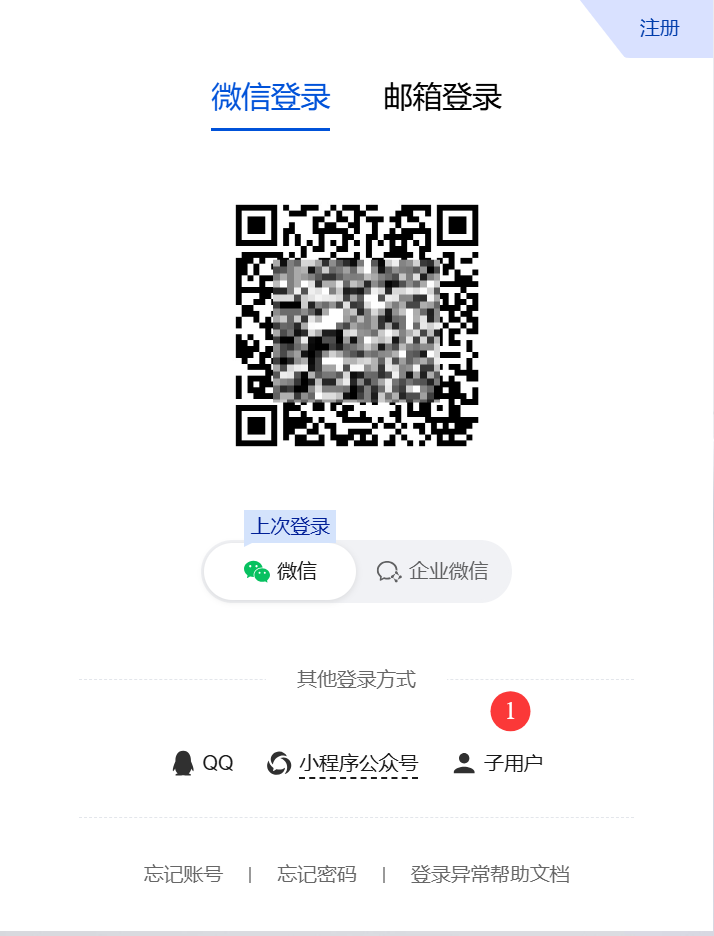 图1:在腾讯云的登录页,点击 子用户,跳转到子用户登录页。