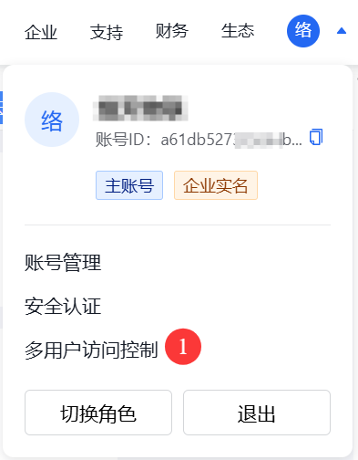 3.1 登录百度智能云后,按下图标示,点击右上角图像,选择多用户访问控制。