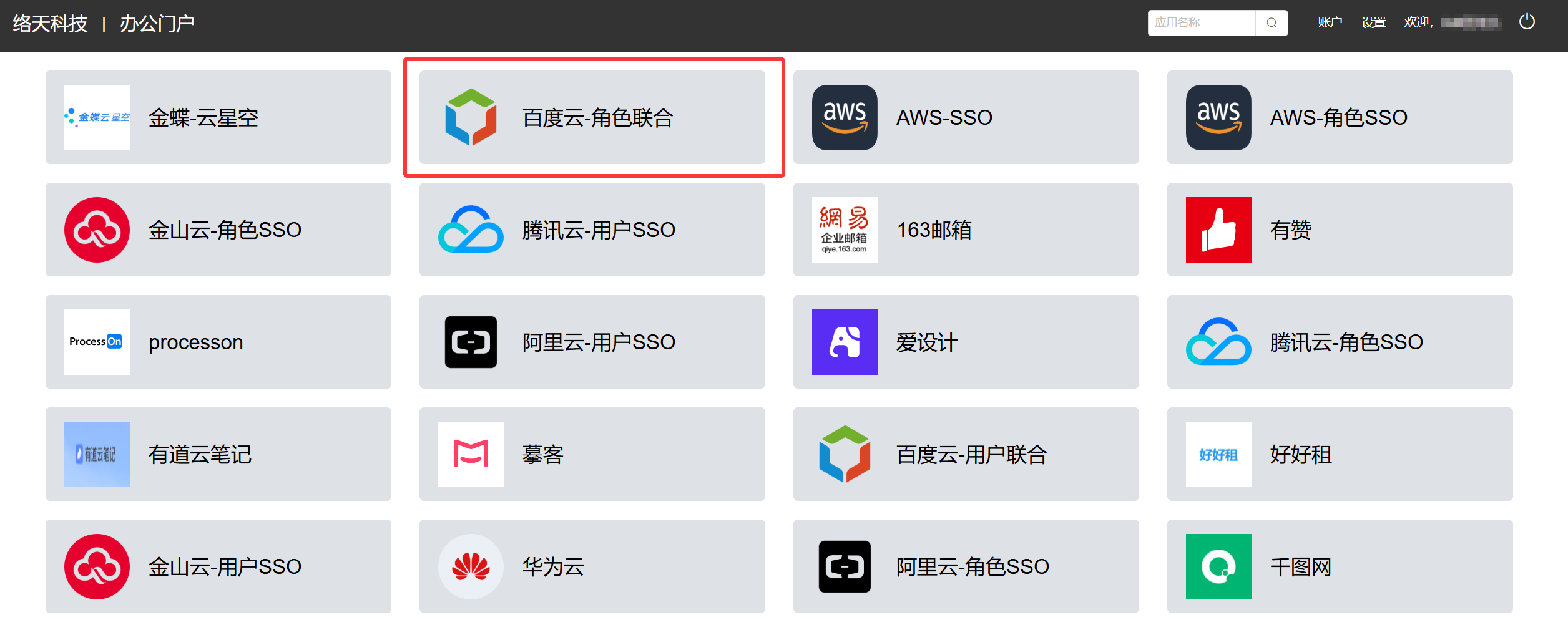 点击 百度云-角色SSO 图标,即可快速登录百度智能云。