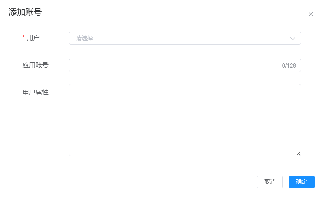 5.点击 应用账号 页签,然后点击添加账号,选择要登录百度云的用户,并按下面的要求填写应用账号和用户属性。