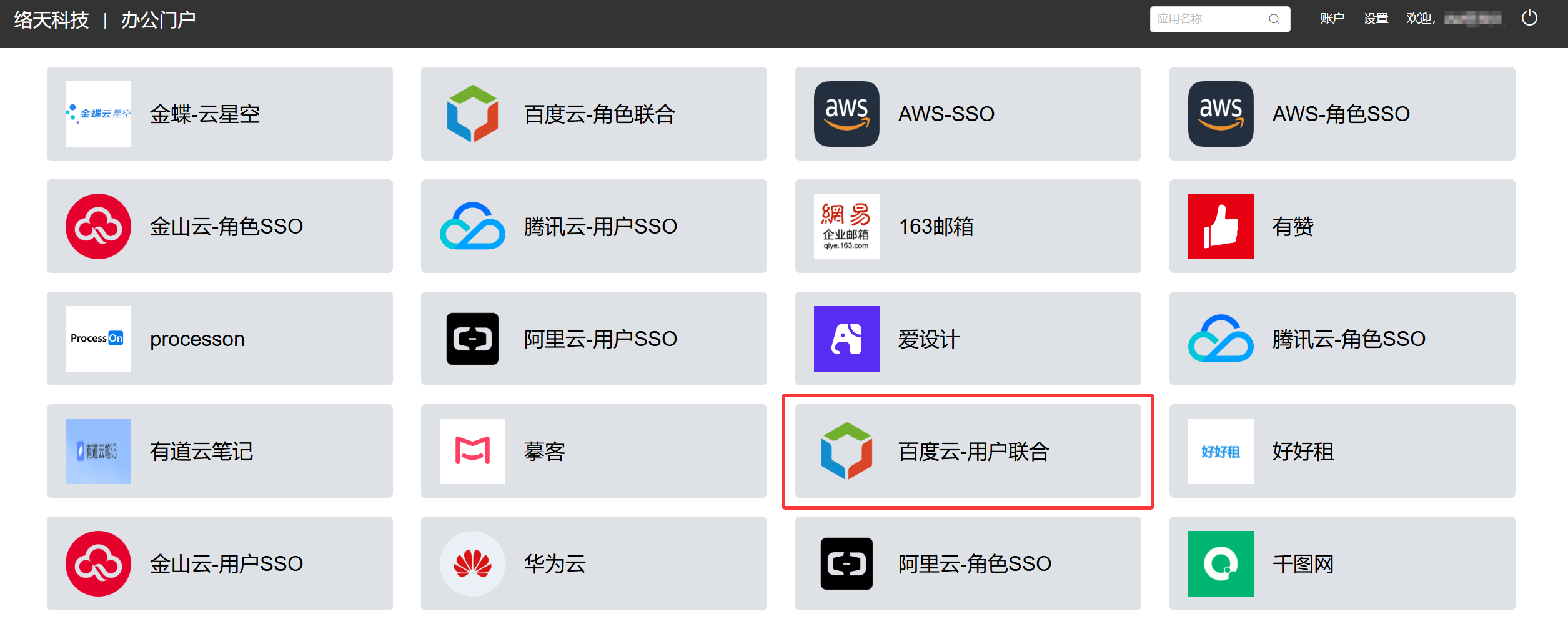 点击 百度云-用户联合 图标,即可快速登录百度智能云。