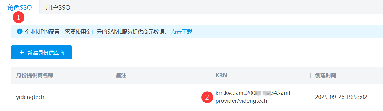 3.3 复制身份提供商的KRN到电脑记事本中,在后续步骤中要用到。