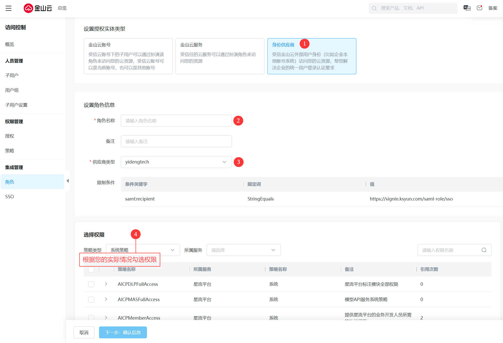 本文为您介绍如何在亿登IDaaS中配置金山云角色SSO。