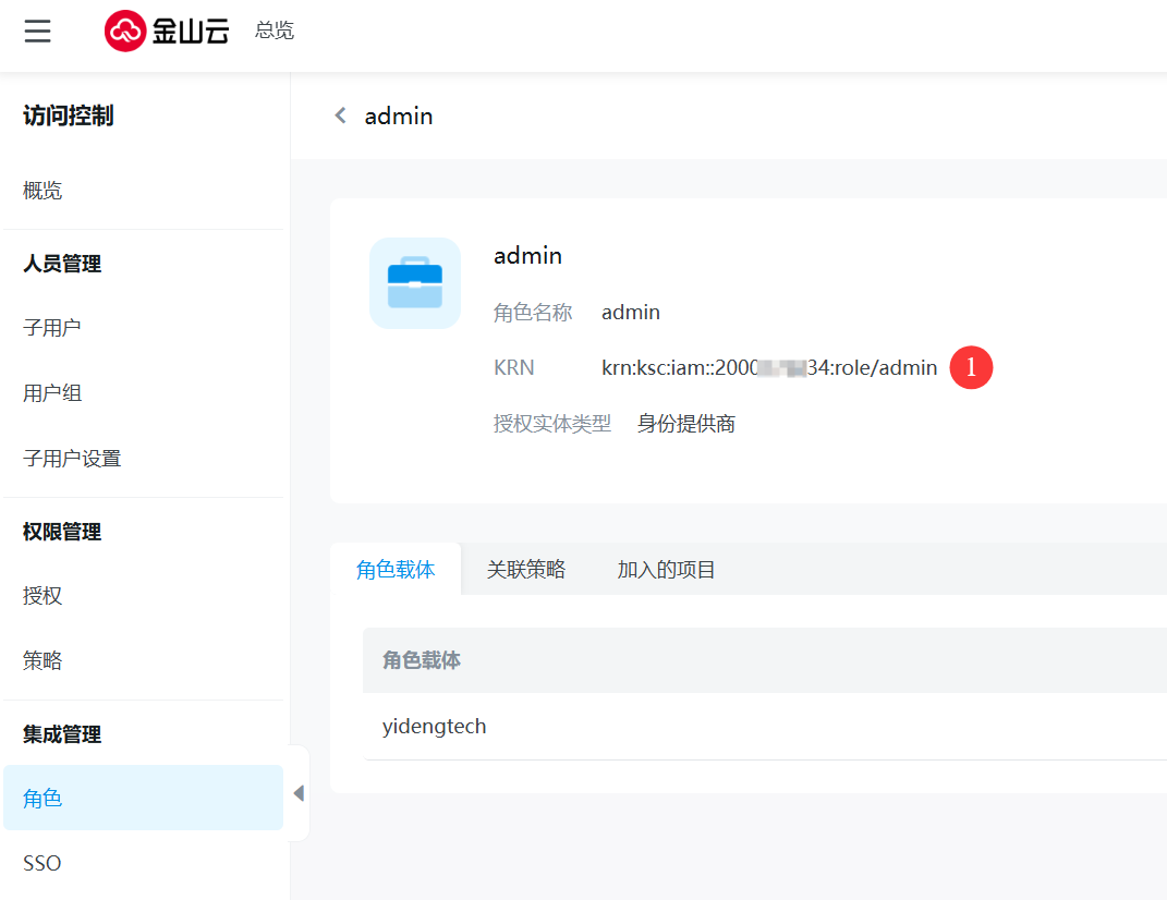 "krn:ksc:iam::200xxxx034:role/admin,krn:ksc:iam::200xxxx034:saml-provider/yidengtech"