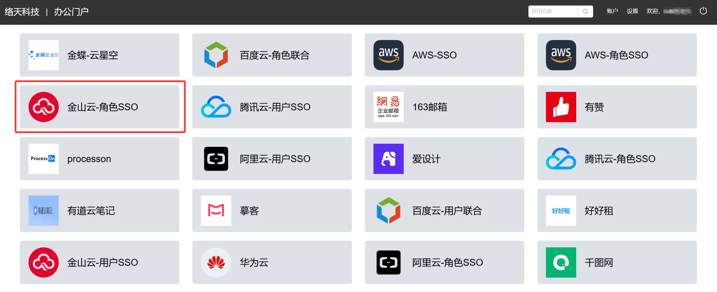 5.返回IDaaS主页,点击 金山云-角色SSO 图标,即可快速登录金山云。
