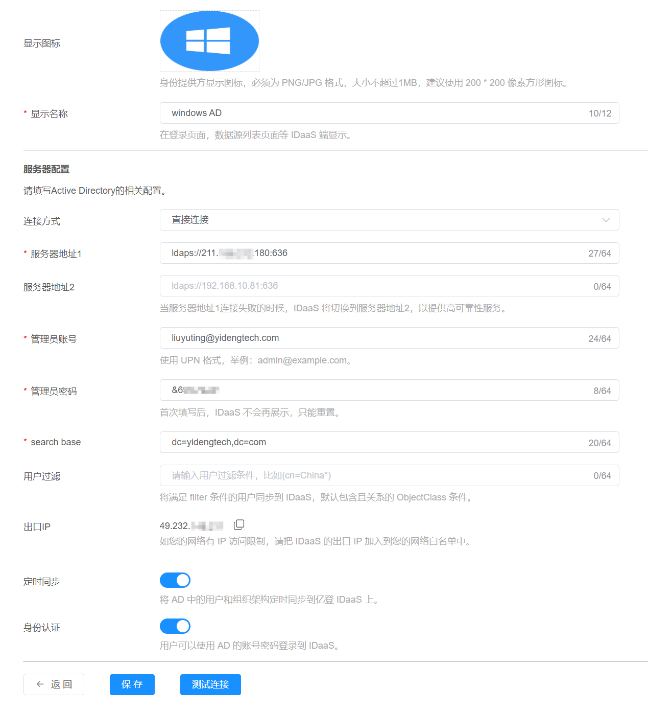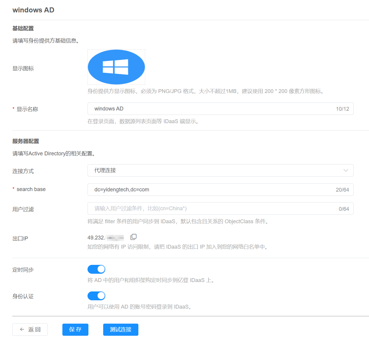 直接连接:需要提供公网IP,让IDaaS连接到Windows AD。