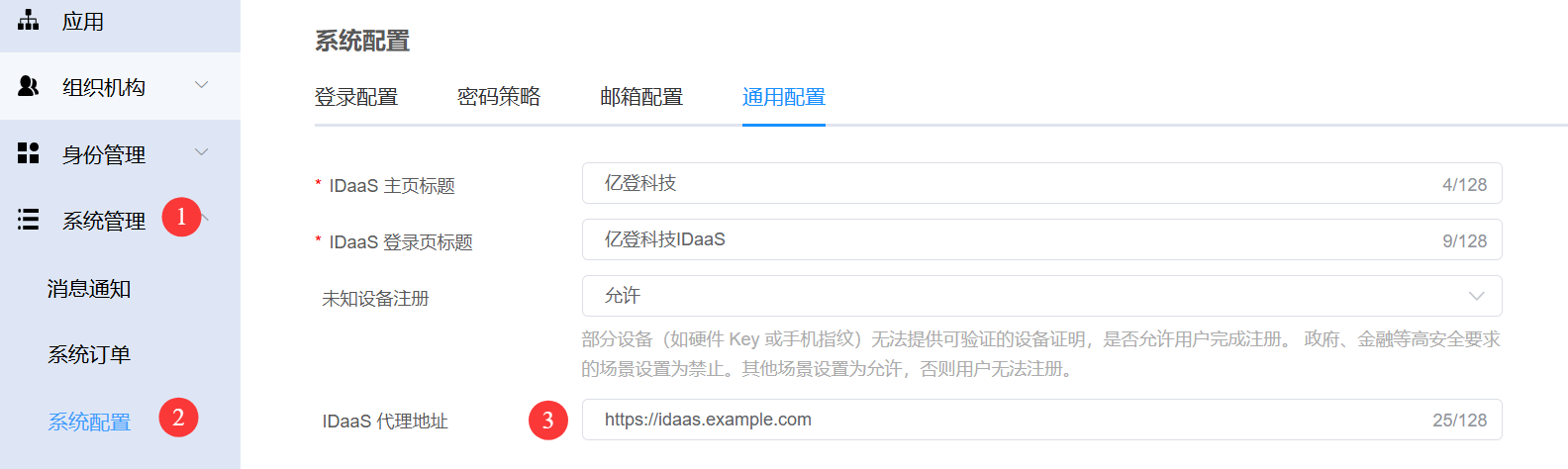 3.3 在IDaaS上点击 系统管理 > 系统设置 > 通用设置,填写IDaaS的代理地址。