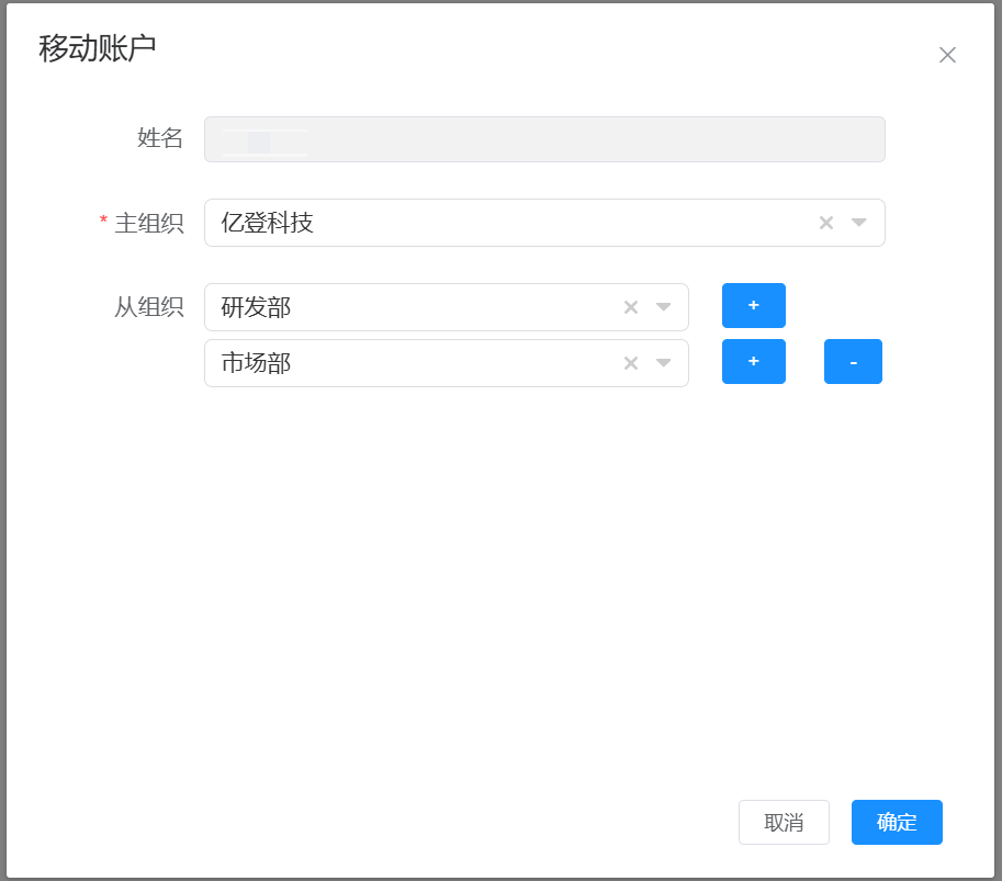 账户所属的主部门。