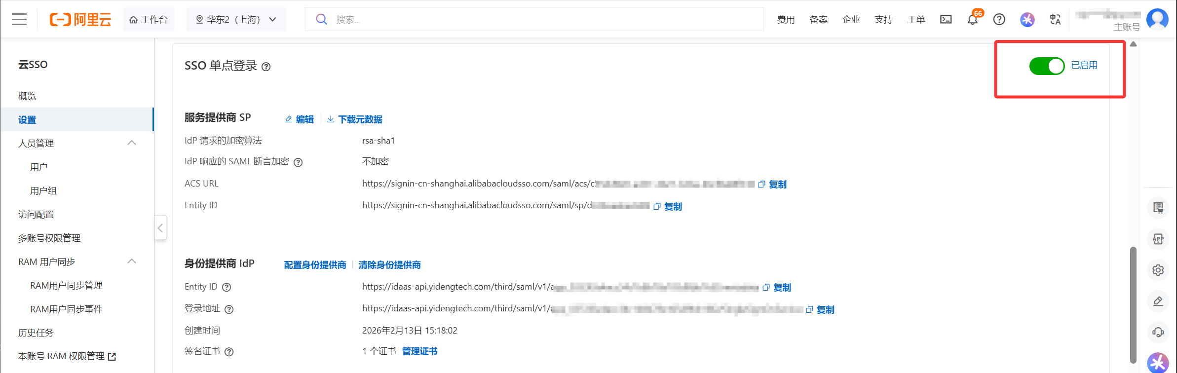 3.在 阿里云云 SSO 配置 SSO