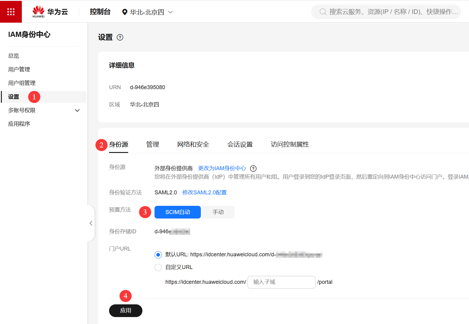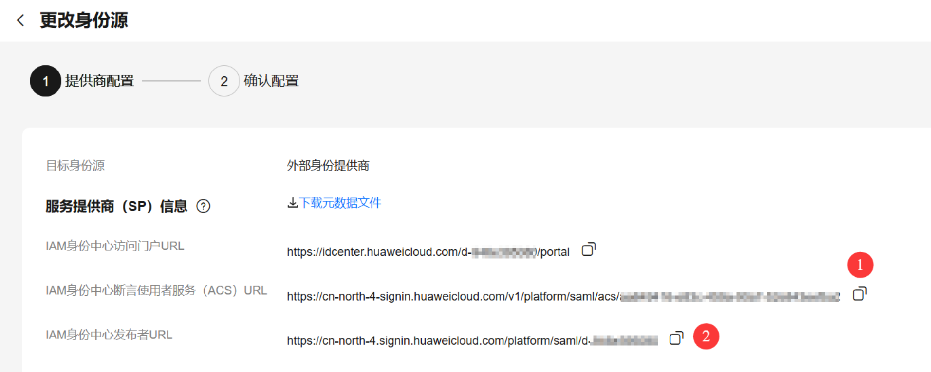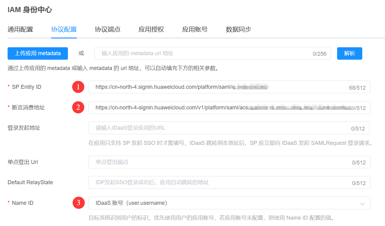 SP Entity ID:填写步骤3.2中序号2的值,即:IAM 身份中心发布者URL