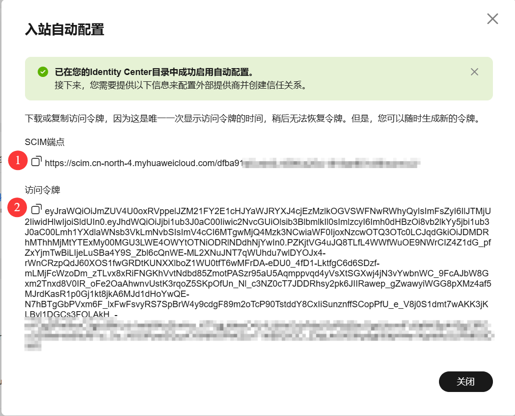 2.复制 SCIM 端点和访问令牌,在步骤3中要用到。