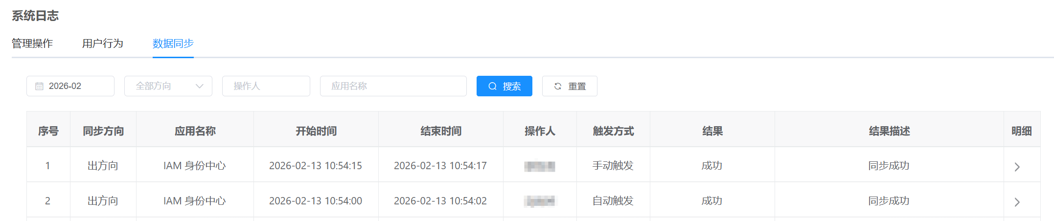 4.1 IDaaS 侧验证。以管理员身份登录后台,点击 系统管理 > 系统日志 > 同步日志。