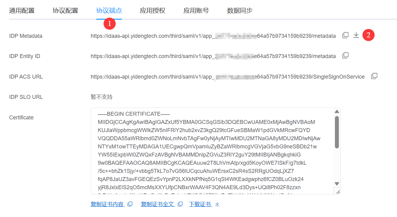 2.2 点击 协议端点 页签,这是用于配置 IAM 身份中心 单点登录的参数,在后续步骤中会用到。