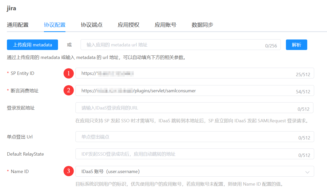 断言消费地址:填写步骤3.2中的标示7输入框中的值,即:认定消费者服务 URL