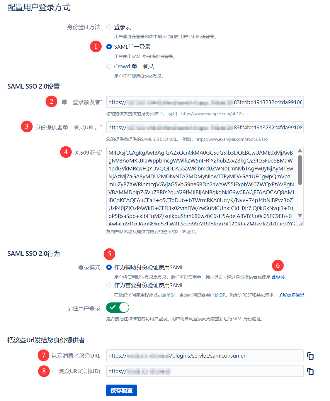SP Entity ID:填写步骤3.2中的标示8输入框中的值,即:观众URL(实体 ID )