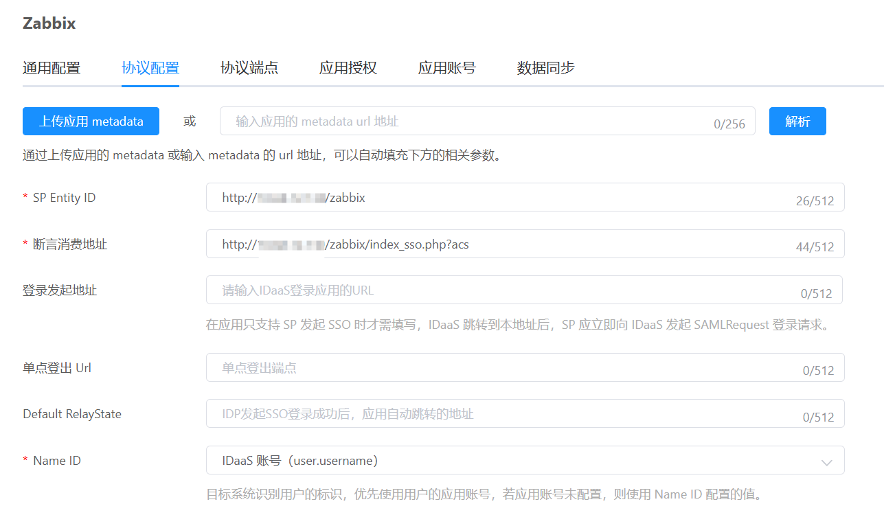 zabbix 同时支持 IDP 和 SP 发起 SSO,若在 SP 发起,则会跳转到 IDaaS 进行认证,若用户未登录,则引导用户完成登录认证后跳回 zabbix 并完成登录。