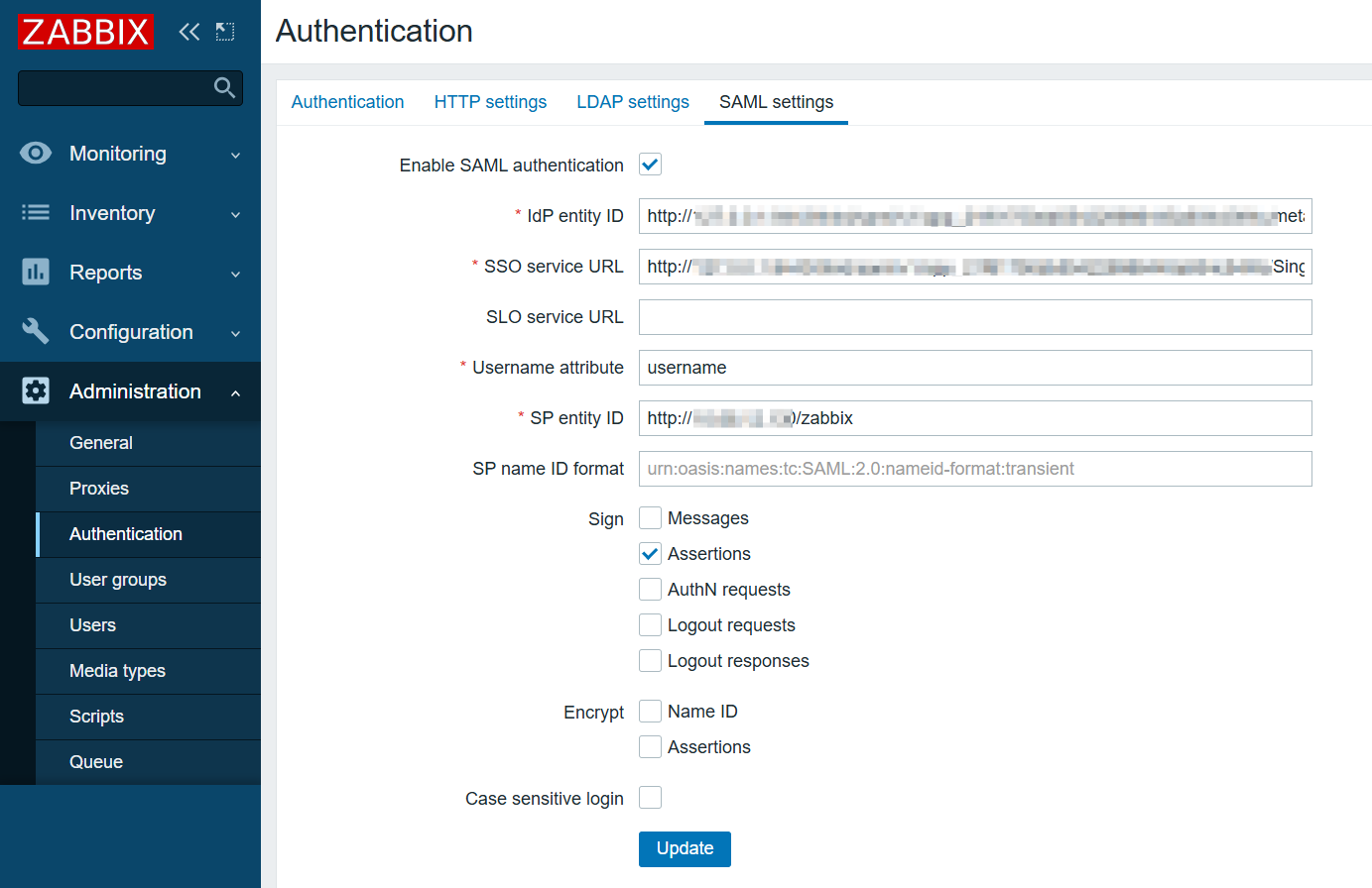 3.在 zabbix 中配置 SSO