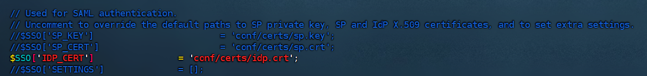 c.修改 zabbix.conf.php,启用配置项$SSO['IDP_CERT']。